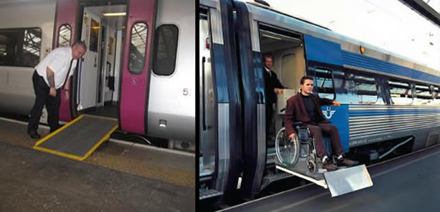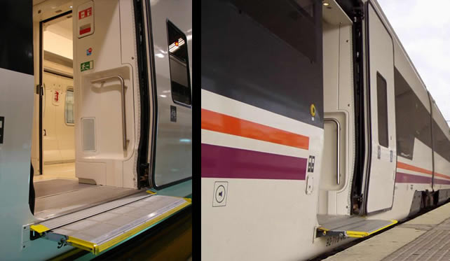 con silla de ruedas a los ferrocarriles adaptados que poseen escalones. Para ello en el presente caso se utiliza