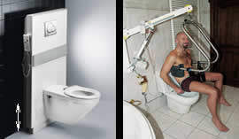 Inodoros con regulación de altura y grúa para trasferencia.